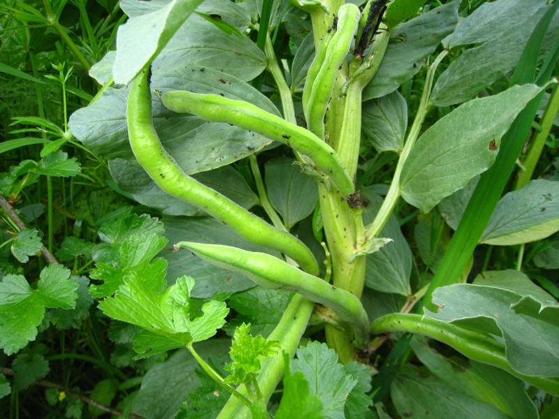 Les asperges vertes sont hautes, les asperges violettes percent tout juste le paillage. Les gousses des fèves grossissent, les céréales poussent, les derniers pommiers commencent à fleurir.